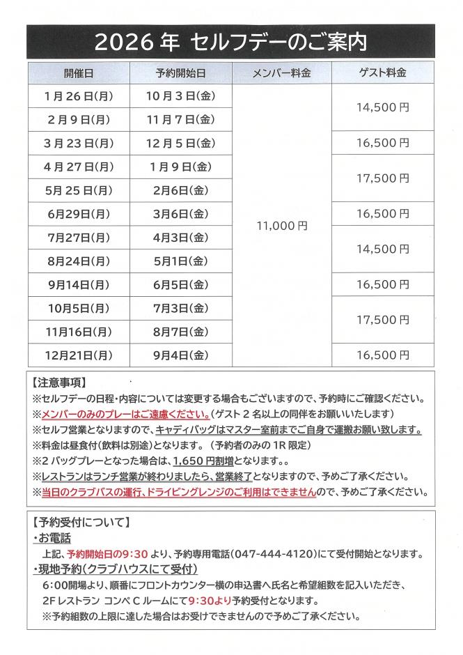 2026年 セルフデーのご案内(R7.11.18)